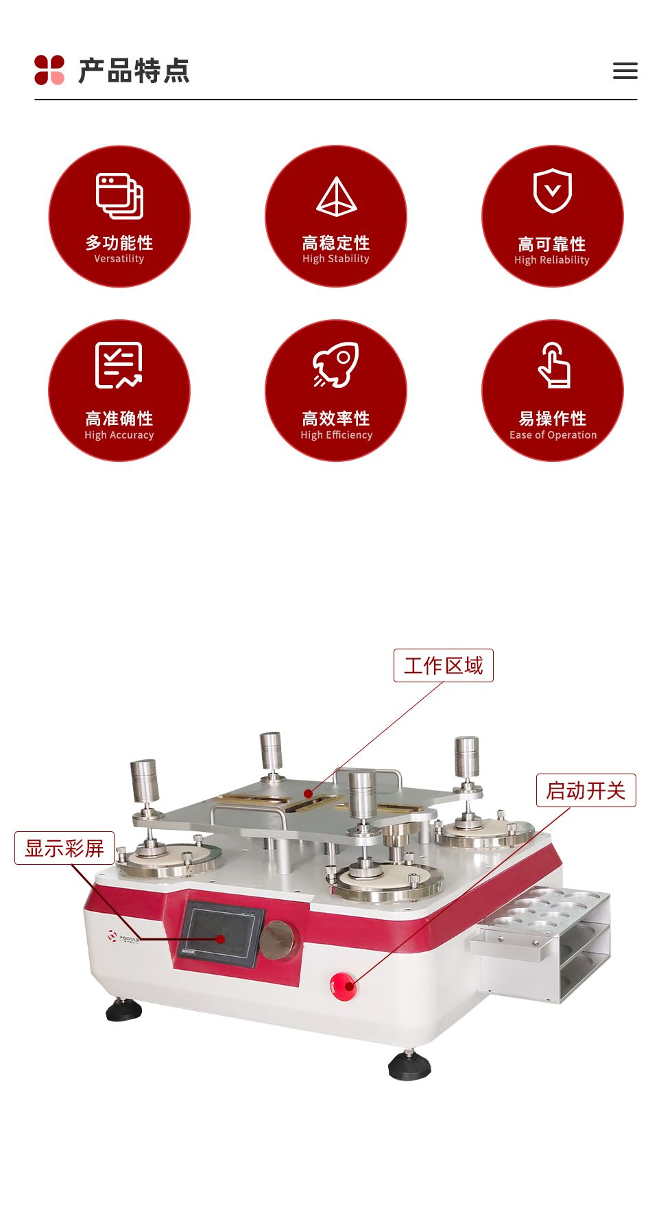 3、PLC模塊化控制,彩色觸摸屏、中英文雙選菜單操作。