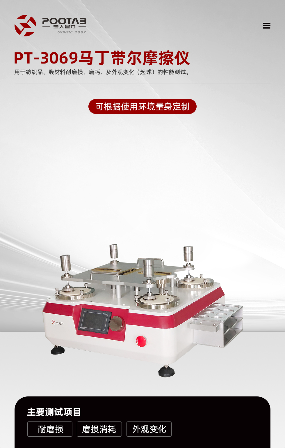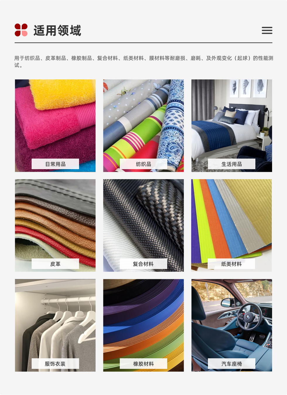 GB/T21196-2007、GB/T4802.2、GB/T13775、FZ/T20020 ASTM D4970、ISO12945-2ASTM D4966