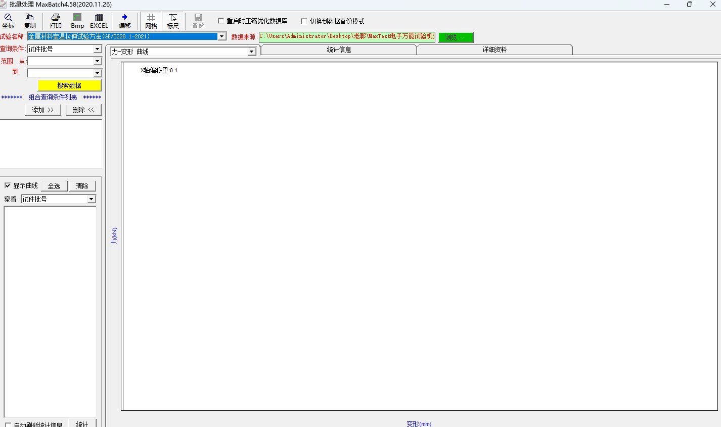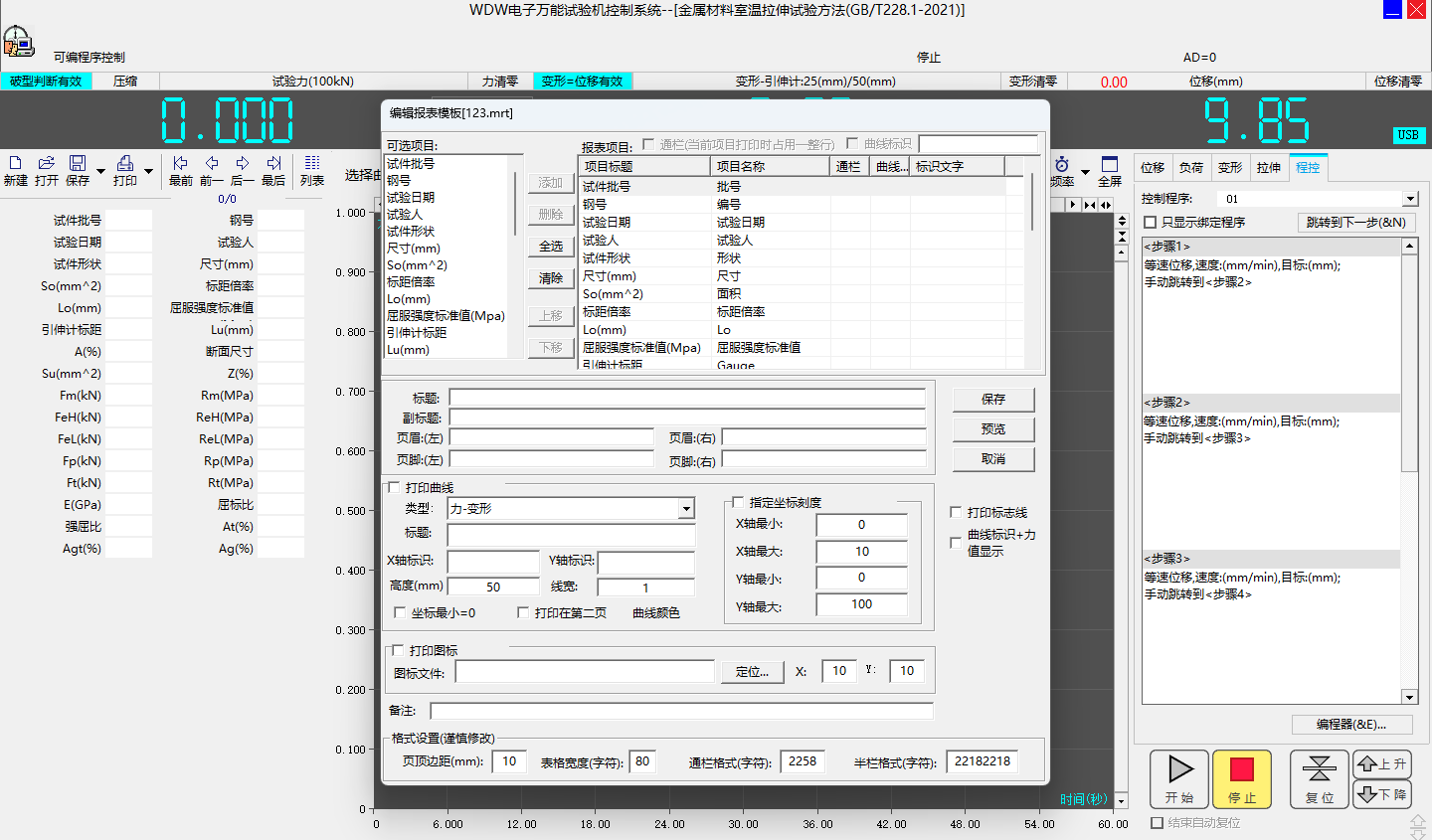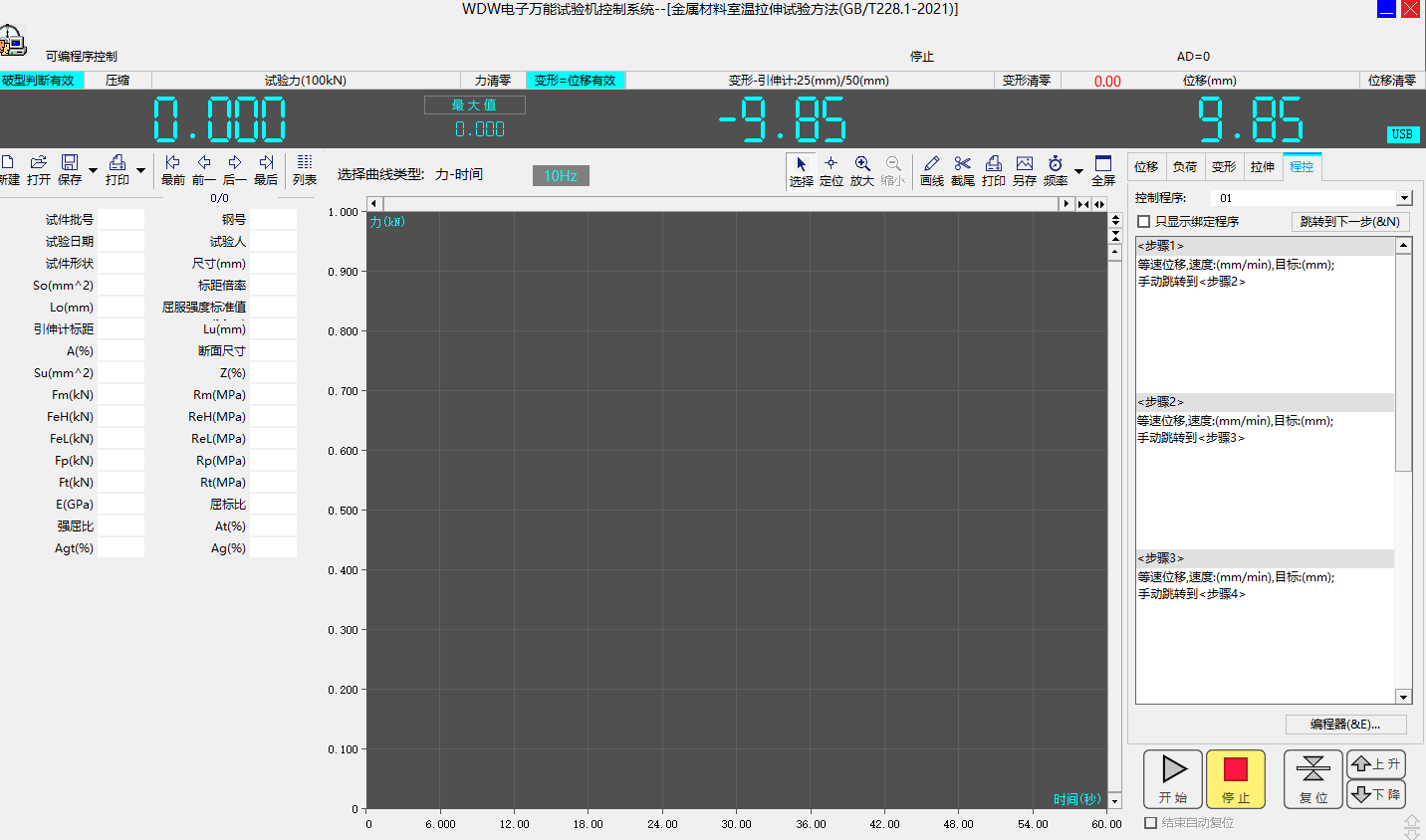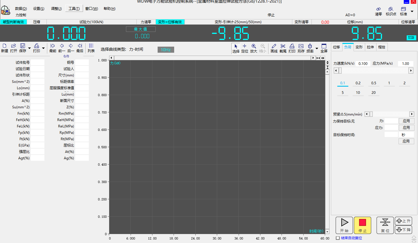 8.4、同時記錄力-時間,變形-時間,力-變形和力-位移試驗曲線,可隨時切換觀察,任意放大縮小,水平或垂直移動,實時高速采樣;