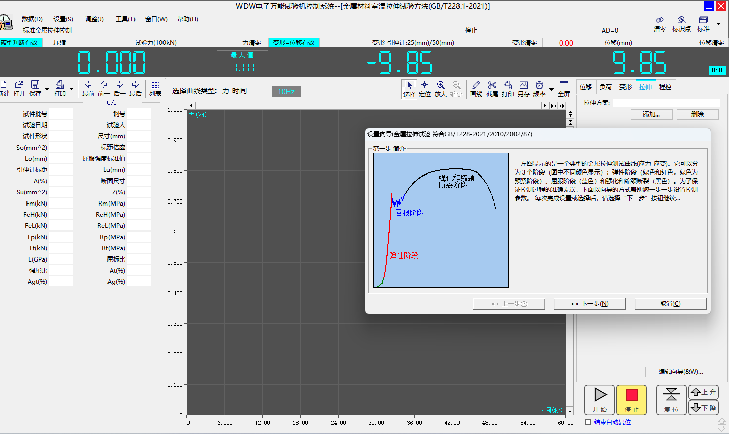 注:以上界面為試驗操作時用力控制的主要界面;