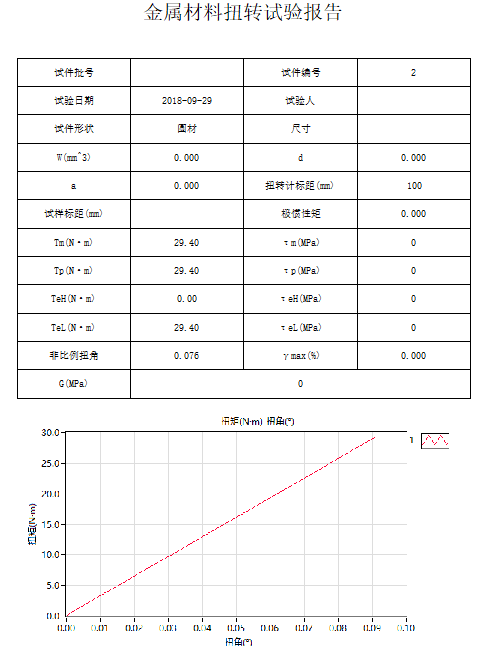 整個試驗過程采用基于Windows平臺、使用以圖形為界面的視窗式操作軟件,軟件同步顯示被測試試件的扭矩-時間、扭角-時間、扭矩-扭角、扭矩-轉(zhuǎn)角等曲線;實時顯示扭轉(zhuǎn)角度、扭矩值、扭矩峰值等參數(shù)。 試驗結(jié)果可形成word、cxcel報表格式,方便儲存、打印、分析試驗結(jié)果。