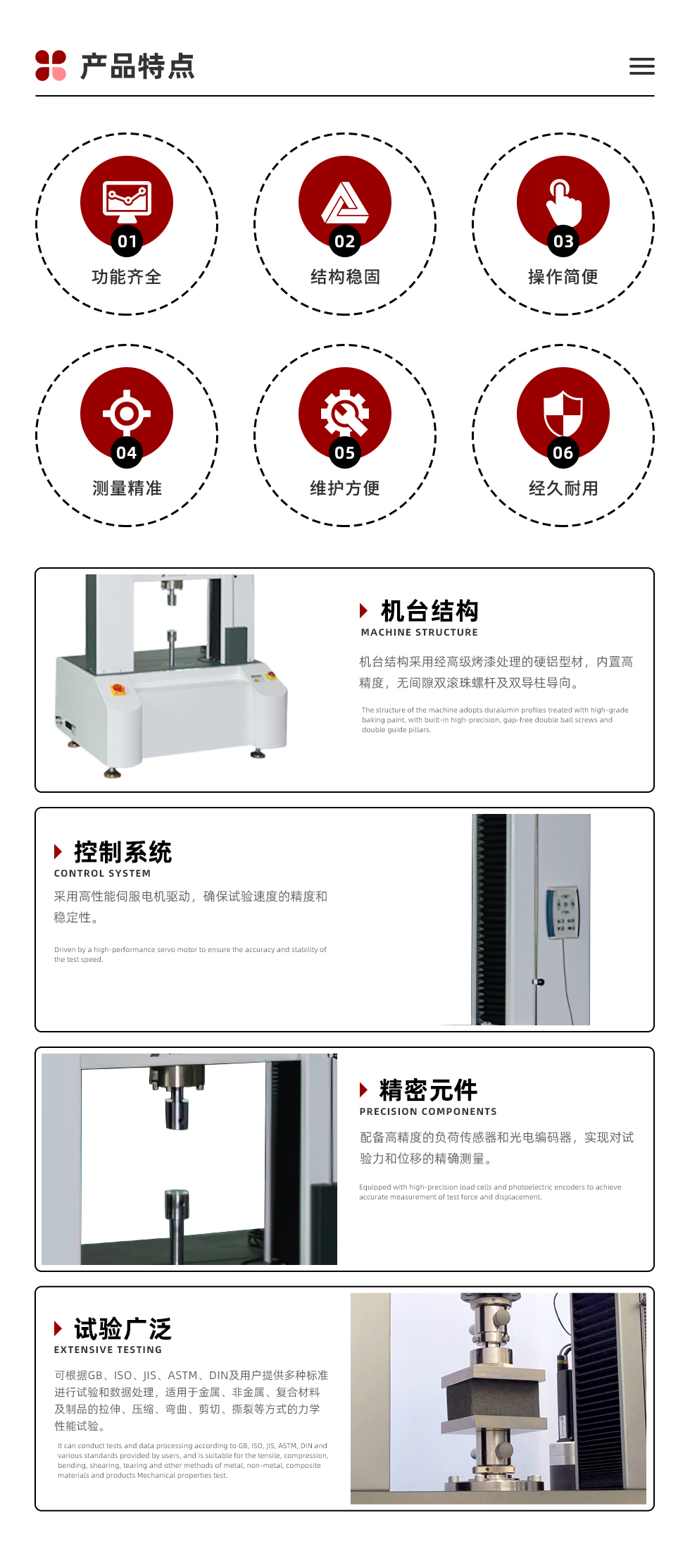 特殊功能 | 可做持拉、持壓及疲勞試驗 |